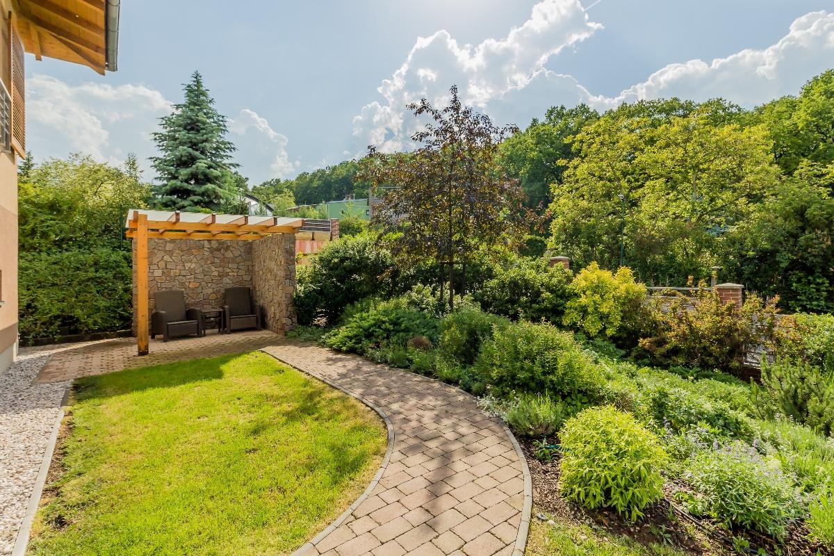 Exkluzivní moderní vila ve francouzském stylu se sedlovou střechou a venkovními dřevěnými okenicemi od studia Heyworth, 6+kk, 250 m2, v překrásné a klidné rezidenční lokalitě starých Černošic- Slunný vrch. Prostorný obývací pokoj 55 m2 s krbem a vstupem na zastřešenou terasu 30 m2, plně vybavenou kuchyňskou linkou se spotřebiči Siemens, 4 ložnice se šatnami, posilovna, 2 koupelny, 3 x wc, komora, spíž, technická místnost, dvougaráž s automatickým ovládáním vjezdové brány a garáž. vrat. Nadstandardní technické vybavení, samostatné wellness s vířivkou a saunou. Pozemek 1212 m2 s krásnou zahradou ve stylu Provence. Mimořádné bydlení v klidné VIP lokalitě s krásným výhledem na okolní lesy a řeku Berounku. Výborná dostupnost do Prahy. Doporučujeme.