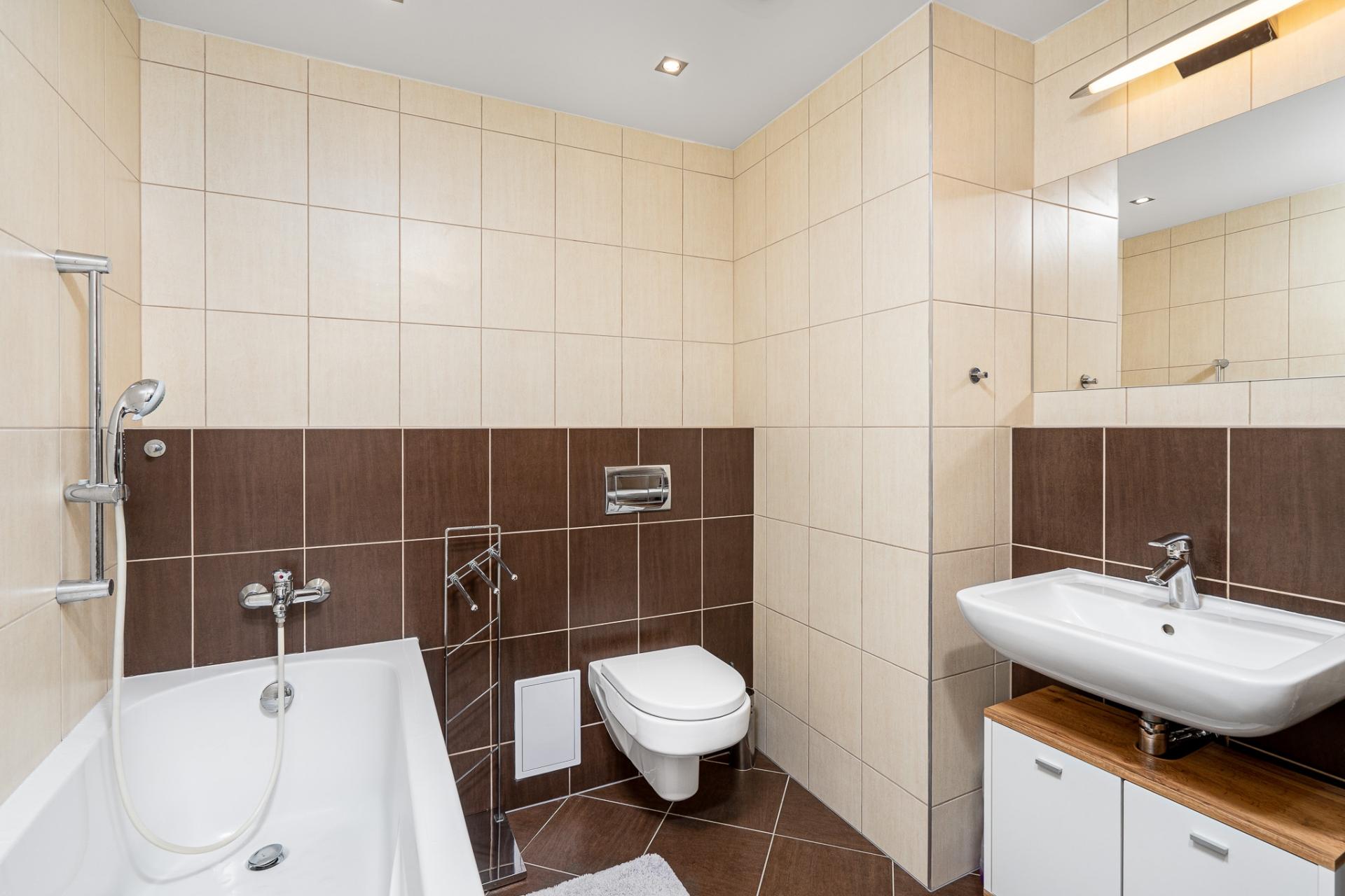 Novostavba 2+kk, 47 m2 s balkonem 3,6 m2, ve 4.NP cihlového domu s výtahem, obývací pokoj s plně vybavenou kuchyňskou linkou, ložnice, koupelna s vanou, prostorná chodba s místem pro šatnu. Kuchyňská linka je vybavena vestavnými spotřebiči: elektrickou troubou, sklokeramickou varnou deskou, digestoří, lednicí s mrazničkou a myčkou. Na podlahách plovoucí podlaha a dlažba. Vytápění zajišťuje společný plynový kotel umístěný v suterénu domu- nízké měsíční náklady. K bytu náleží parkovací stání ve společné garáži a taktéž sklepní kóje u parkovacího místa. Veškerá občanská vybavenost se nachází v Hostivici, Chýni či nedalekém Zličíně (škola, školka, gymnázium, obchody, zdravotnická zařízení). V lokalitě se taktéž plánuje otevření menšího obchodu s potravinami a občerstvením v místě tohoto rezidenčního projektu. Zastávka autobusu přímo u bytového komplexu, 50 m od domu, vlak (7 min. metro Veleslavín nebo 23 min. Masarykovo nádraží), autem pouhých 7 minut na metro či do OC Zličín, Letiště Václava Havla 12 min. Lokalita se nachází v bezprostřední blízkosti chráněné přírodní památky Hostivické rybníky a okolí je taktéž vhodné ke sportovnímu či rekreačnímu vyžití. Příjemný a světlý byt zajišťující komfortní bydlení. Doporučujeme.
