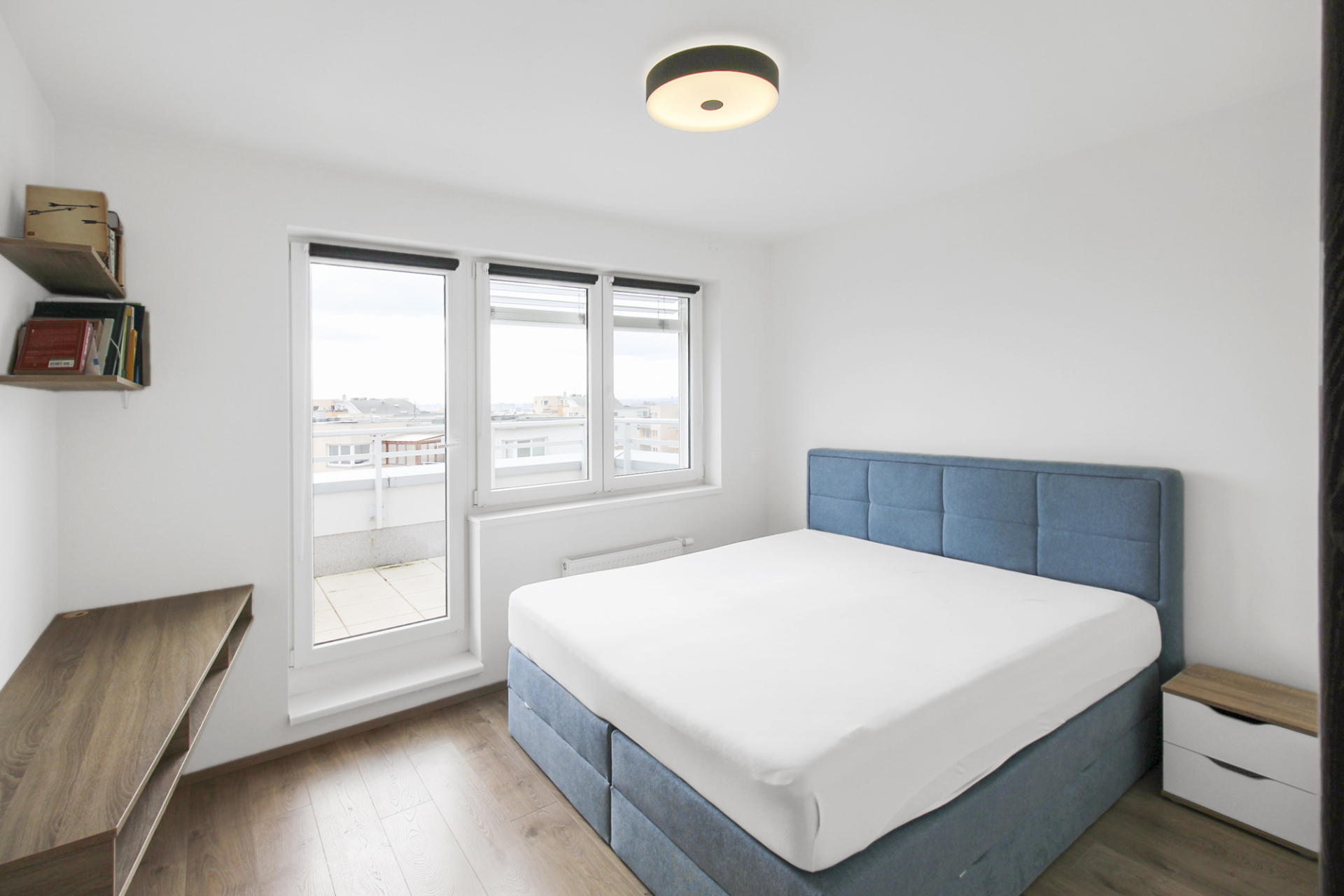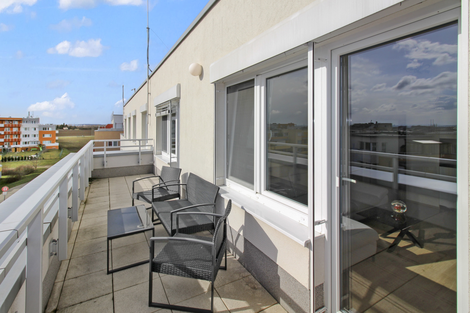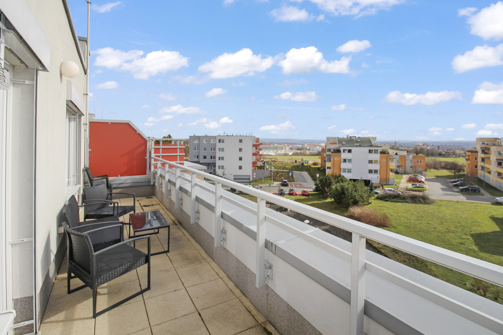 Komfortní a světlý byt 2+kk, 52 m2, s terasou 13 m2, prostorným sklepem 7 m2 a parkovacím stáním, ve 3. a posledním patře novostavby s výtahem. Obývací pokoj s plně vybavenou kuchyňskou linkou a vstupem na slunnou terasu s pěkným výhledem, 1 ložnice s vestavnou skříní a taktéž vstupem na terasu, koupelna s vanou a sprchovou zástěnou, technická místnost pro pračku a sušičku, internet, kabelová tv. Velmi příjemná orientace na jihozápad. Útulný byt v klidné lokalitě u cyklostezky, lesoparku Arborka a u budoucí nedaleké vlakové stanice, zastávka autobusu u domu, výborná dostupnost do centra, pouhých 5 minut od metra Rajská zahrada, obchodního centra Černý Most a veškerou občanskou vybaveností. Doporučujeme.