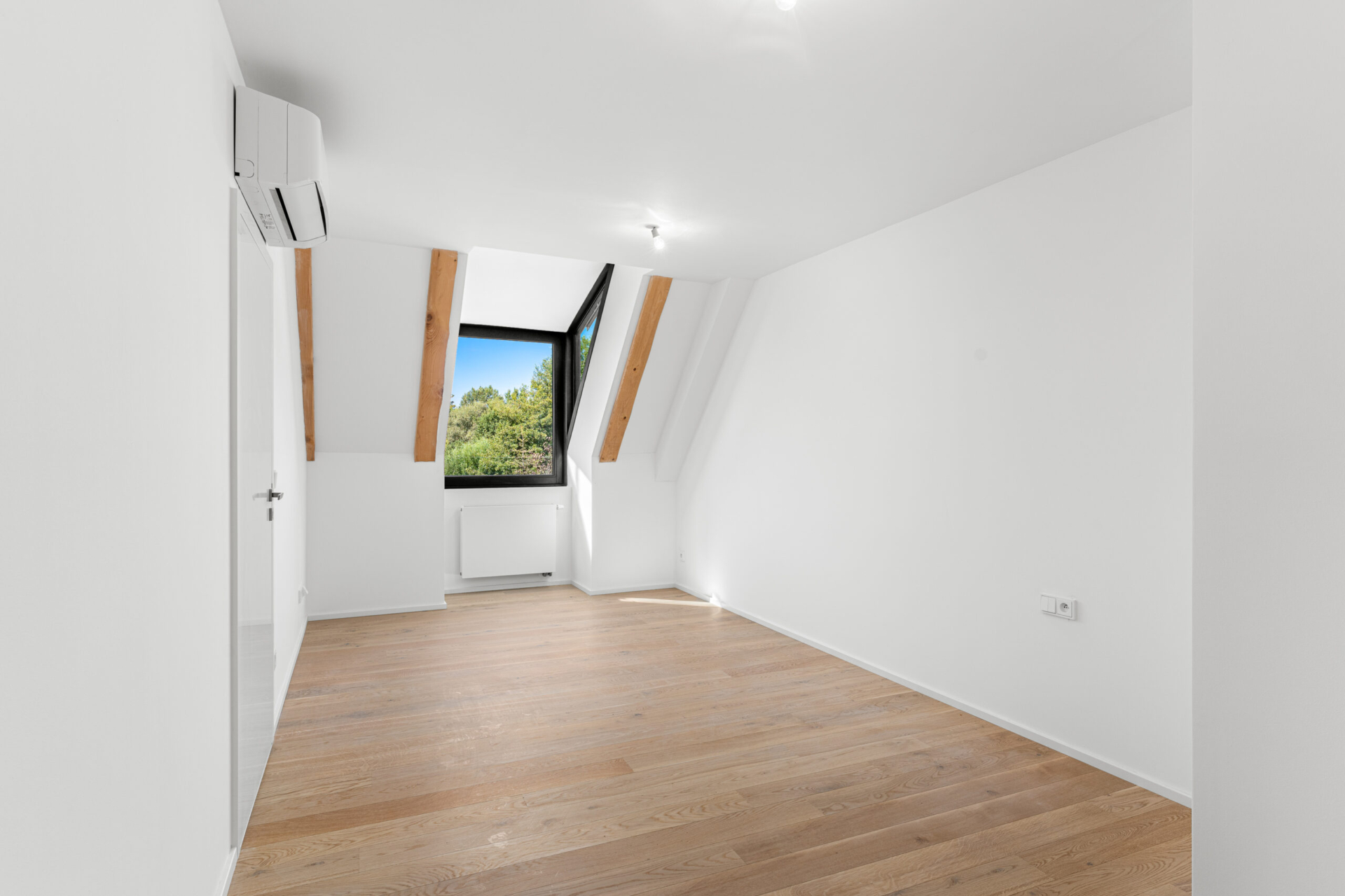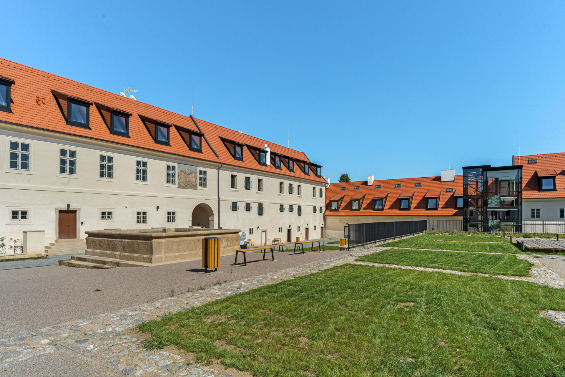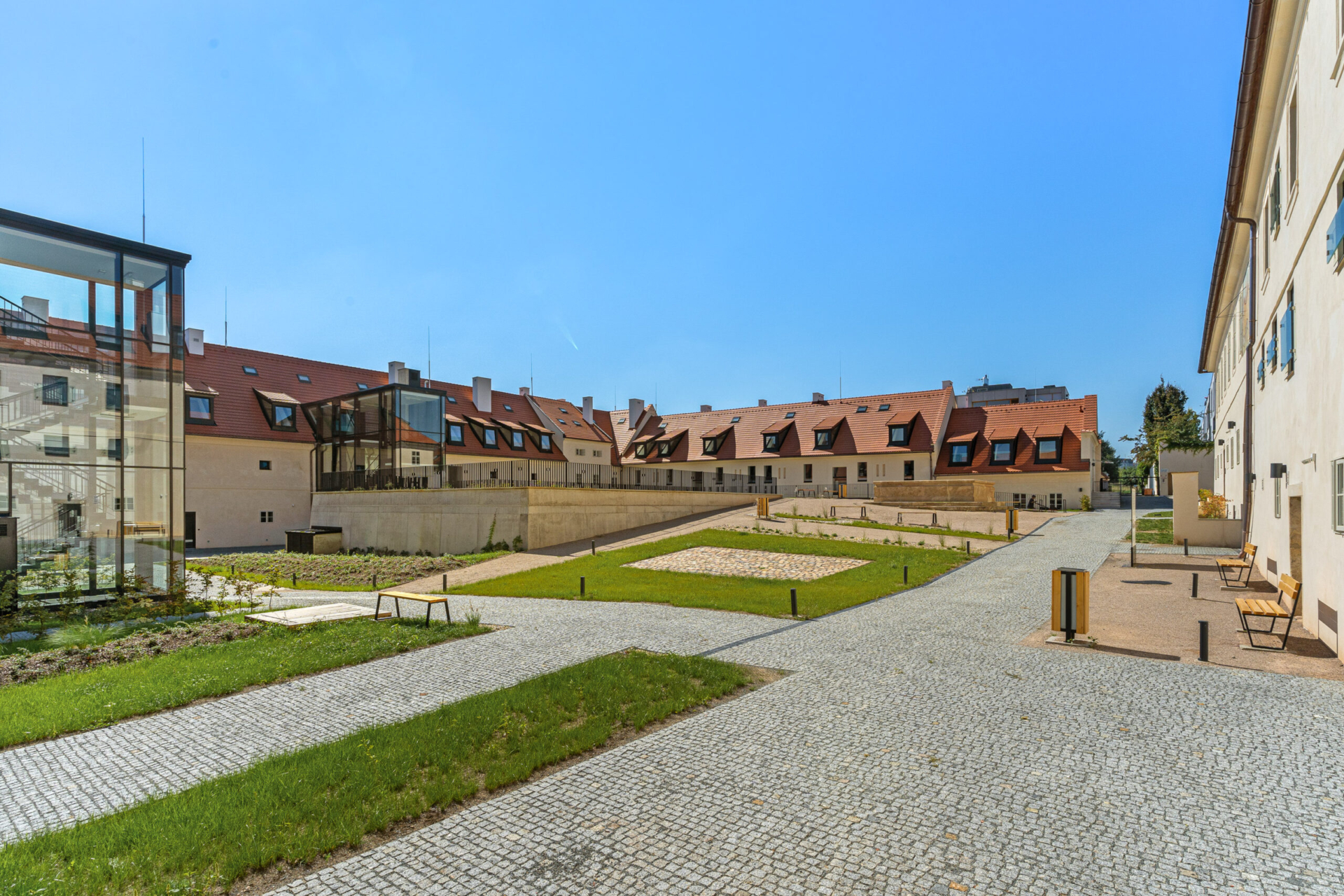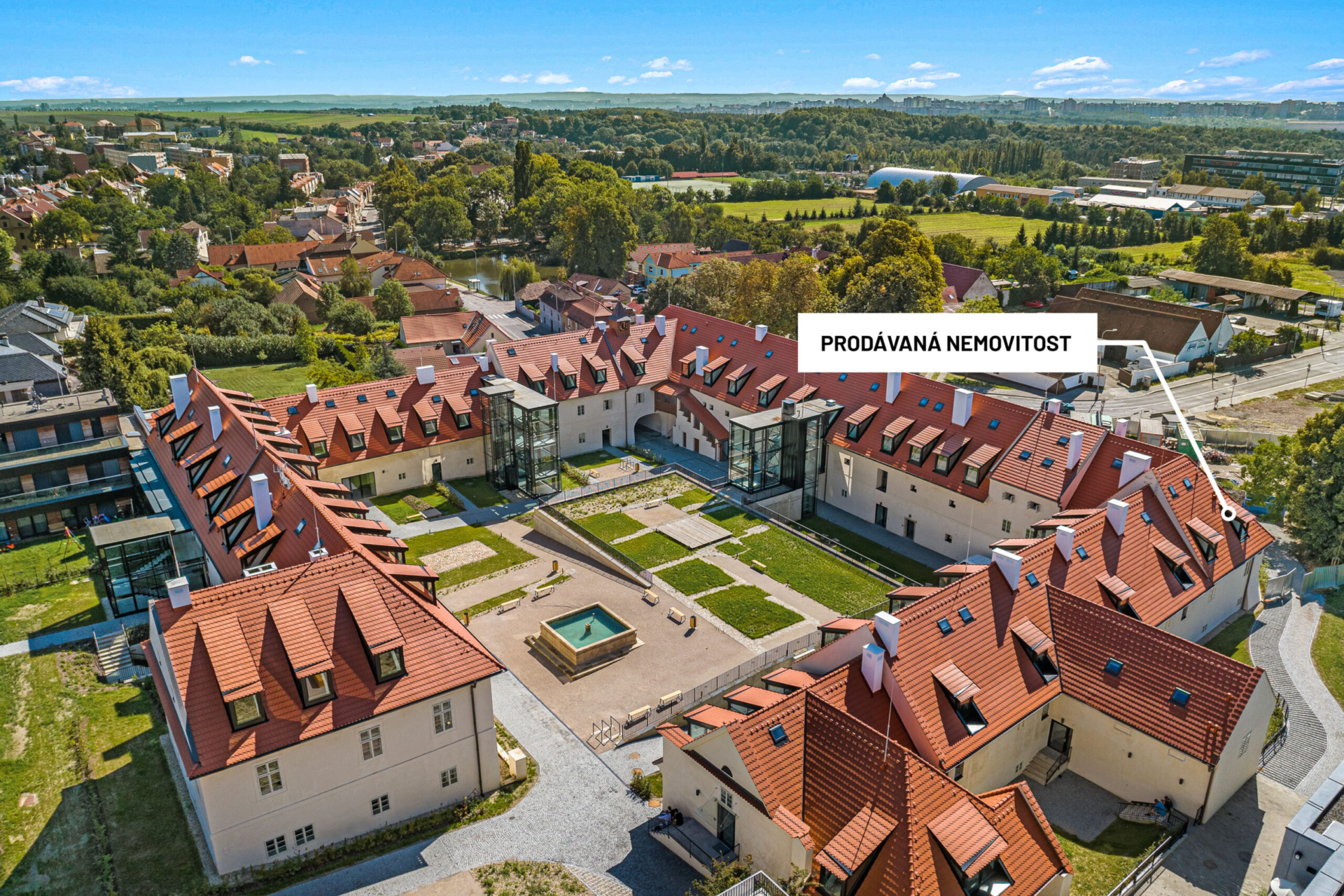 A modern attic maisonette for a comfortable family living in Prague. Unique atmosphere of a baroque chateau with a pond and an exclusive courtyard. Altogether with a private parking area and a golf course right behind the property, all while being just 10 minutes away from Prague center.