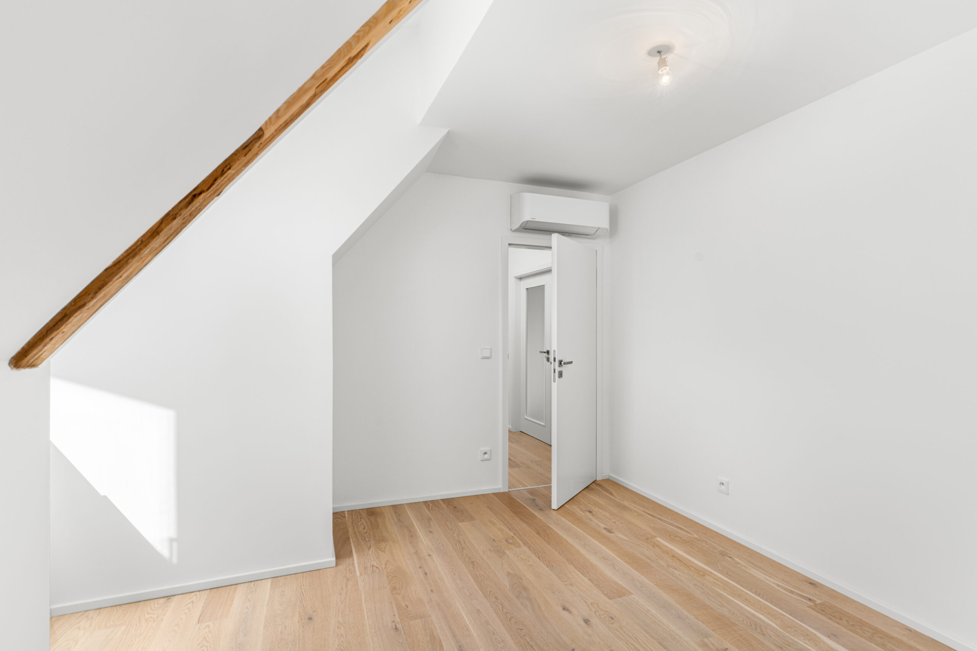 Mezonetový byt má nejmodernější vybavení a přitom stále dýchá historickou atmosférou, kterou podtrhují všudypřítomné dřevěné prvky – podlahy, schody nebo krovy. Najdete zde předsíň s komorou a praktickou toaletou a koupelnu s vanou. Obývací pokoj s plně zařízenou kuchyňskou linkou ve světlých barvách v kombinaci se dřevem, který má komfortních 32 metrů čtverečních. Dále dva pokoje, které můžete zařídit jako ložnice nebo pracovnu a pokoj pro hosty. V podkrovním patře jsou pak další dvě ložnice a druhá koupelna, pro maximální pohodlí všech členů domácnosti. Byt je klimatizovaný, takže se můžete těšit na celoroční tepelný komfort. K dispozici budete mít samozřejmě i internet a kabelovou televizi.
